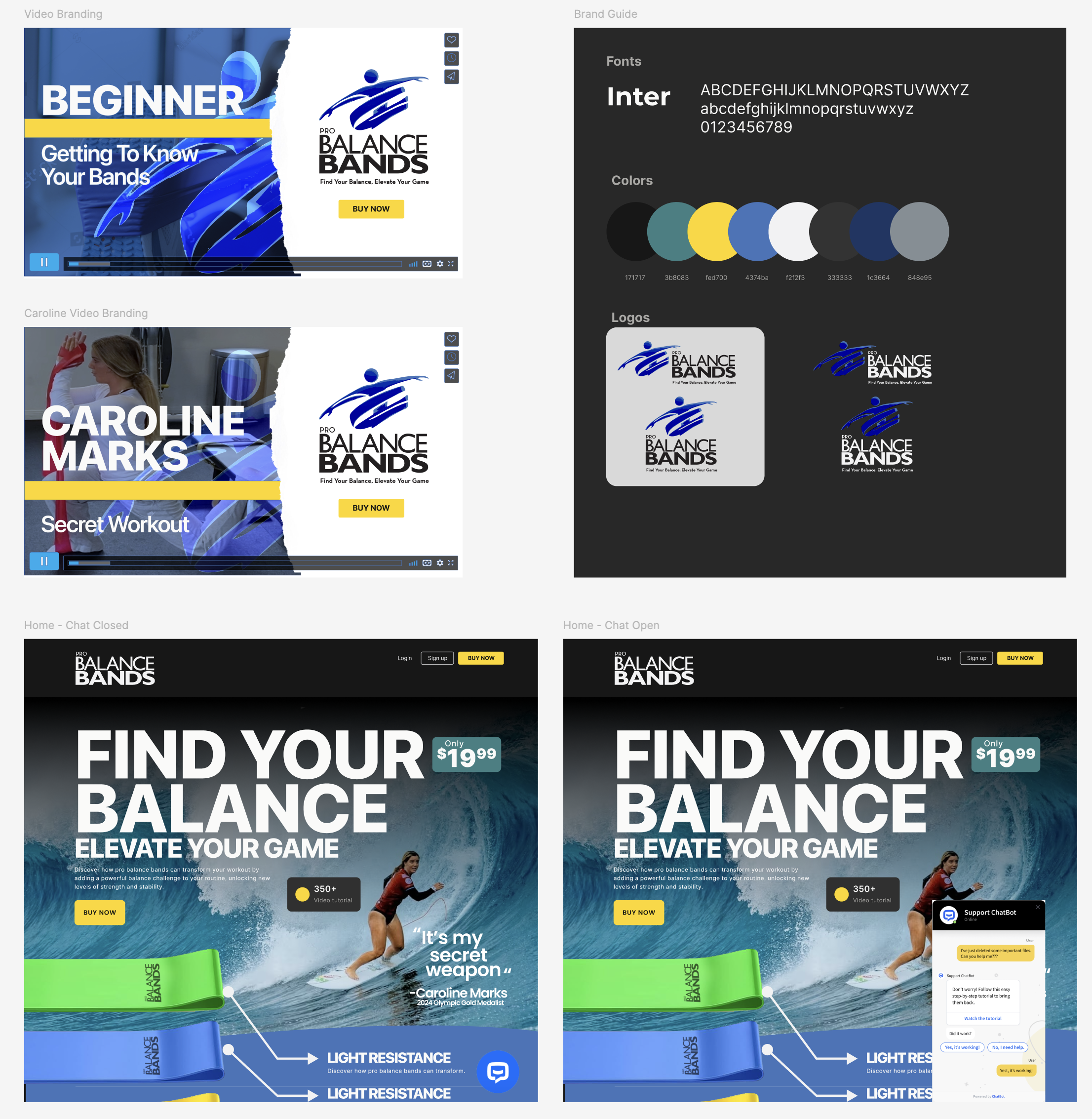 For Pro Balance Bands, I created a complete branding and design kit that brought energy and credibility to the fitness space. Backed by 2024 Olympic Gold Medalist surfer Caroline Marks, the brand needed to reflect elite performance and coastal grit. From logo and packaging to marketing materials and visual identity, every detail was built to resonate with active users. Originally designed to include a subscription-based video series for training with the bands, the brand balanced inspiration, functionality, and visual impact from the ground up.