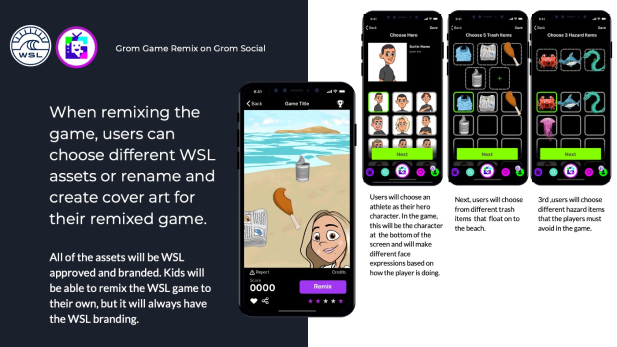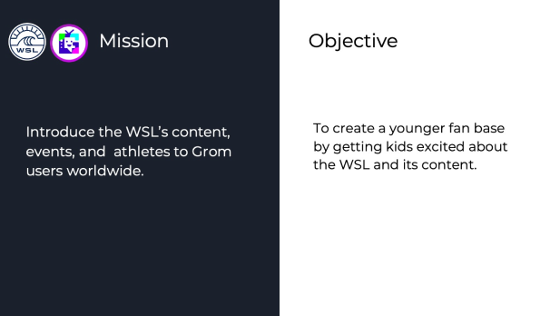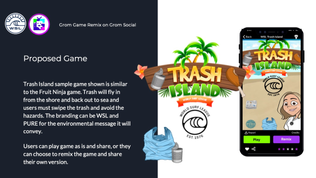 I packaged the entire concept into a polished, investor-ready presentation that included the app design, character artwork, gameplay mechanics, and branding elements. The goal was to clearly communicate the value of the partnership, showcasing how the game could engage a younger audience while aligning with both Grom Social’s mission and the WSL’s global reach. Drawing on our previous collaboration with the WSL, I tailored the pitch deck to speak their language—emphasizing youth engagement, digital interactivity, and brand synergy—giving Grom’s CEO the tools needed to confidently present the concept and spark further partnership discussions.